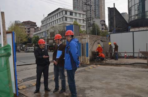 一年之計在于春,開春后工程全面啟動,安全工作備受關注。3月19日,省地礦局楊茂華局長、祝世強副局長帶領局技安處處長李躍林、經管處處長李廷強、局工會主席李健等到我院承擔的鹽道街出版大廈基坑項目檢查指導安全工作。