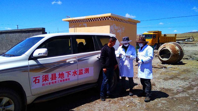 4月18日,項目組人員翻山越嶺,到達了位于海拔4300m的石渠縣城,開展石渠縣地下水監測工作。換上白大褂,戴上口罩和乳膠手套,項目組人員對縣城周邊包蟲病防治地下水取水井進行了全面的檢查和了解,做好相關調查記錄,并對典型井點進行了采樣工作,為石渠縣包蟲病區廣大人民群眾安全飲水保駕護航。