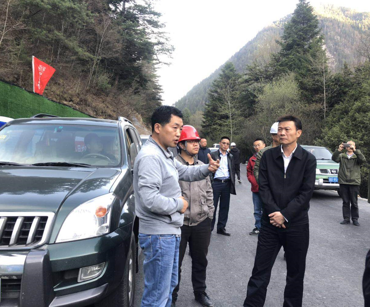 蔣廳長一行不顧長途跋涉的疲勞,在業主單位——九寨溝國家級自然保護區管理局副局長仁青周的陪同下,實地檢查指導了諾日朗瀑布下行站臺乘車點崩塌治理工程工點的施工情況,詳細詢問和了解該工點的治理措施、目前工作開展情況以及施工過程中存在的困難。對施工現場文明施工等提出了意見建議。